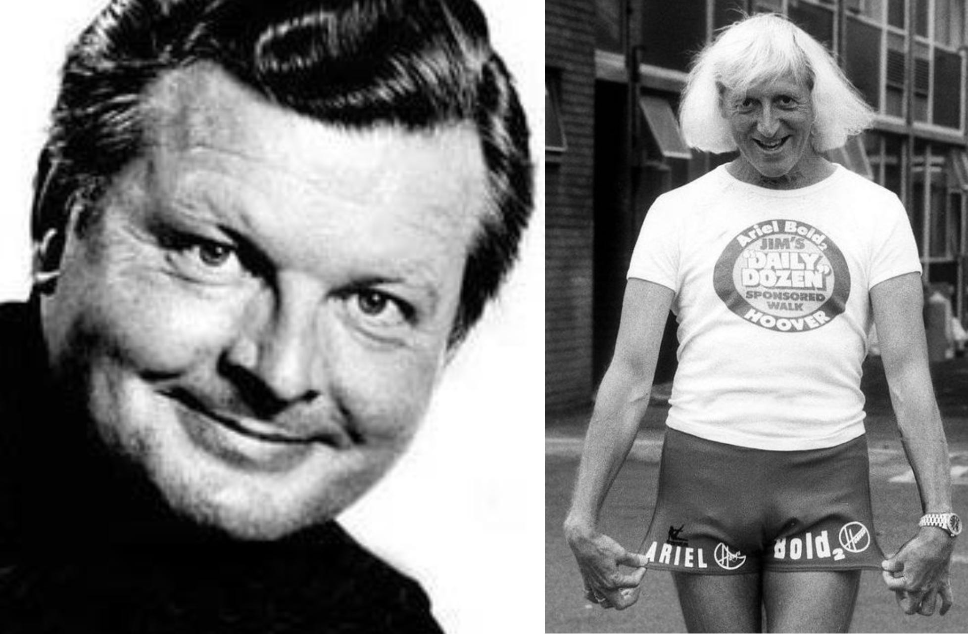 Image: left, Alfred Hawthorne (“Benny”) Hill; right, Sir James William Vincent (“Jimmy”) Savile.